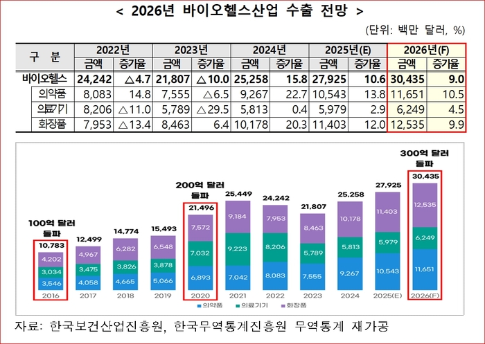 2026년 바이오헬스 수출 304억 달러 전망…사상 첫 300억 달러 돌파